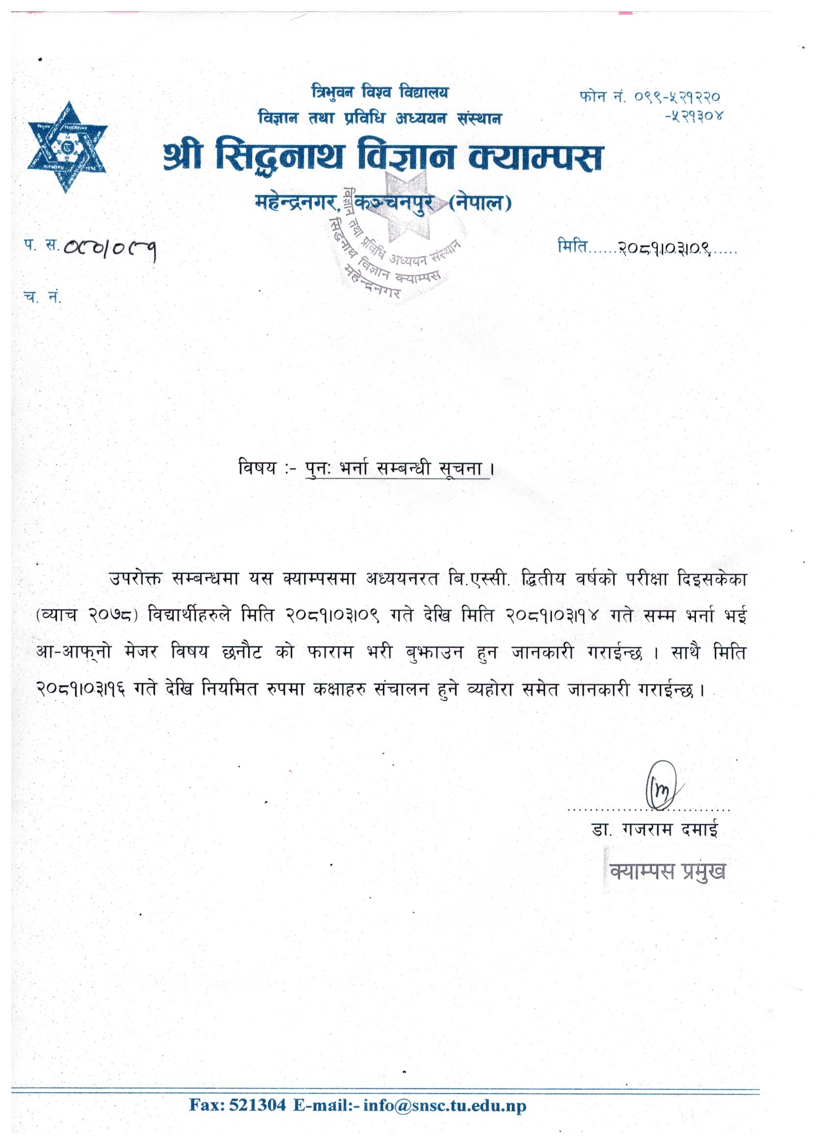 पुन: भर्ना सम्बन्धी सूचना